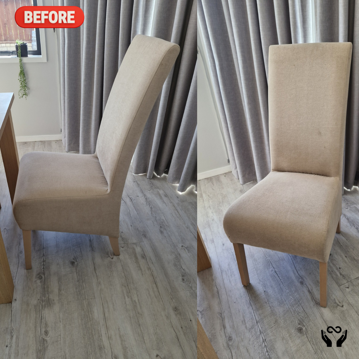 Transform your dining space with our expert Dining Chair Reupholstery Service! Don’t replace your beloved chairs – give them a stunning new lease on life with our premium fabric choices. We specialize in revamping your dining room chairs with our best-selling FibreGuard fabric range, renowned for its incredible stain-resistant and easy-clean properties.