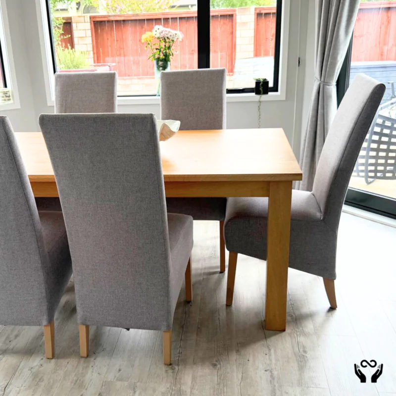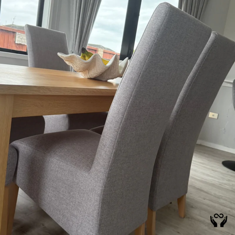Perfect for busy households, families with children, or anyone seeking durable upholstery fabric, FibreGuard ensures your chairs look pristine for years to come. Our reupholstered dining chairs combine elegant style with unmatched practicality. Our experienced team will guide you through the ideal upholstery solution, matching your specific needs and design preferences to make your chairs truly look new again. Invest in long-lasting, family-friendly dining furniture today!
